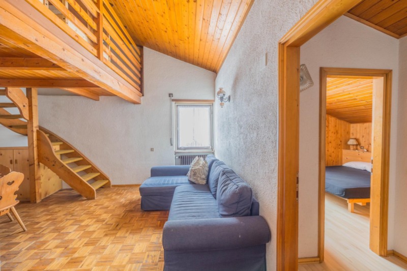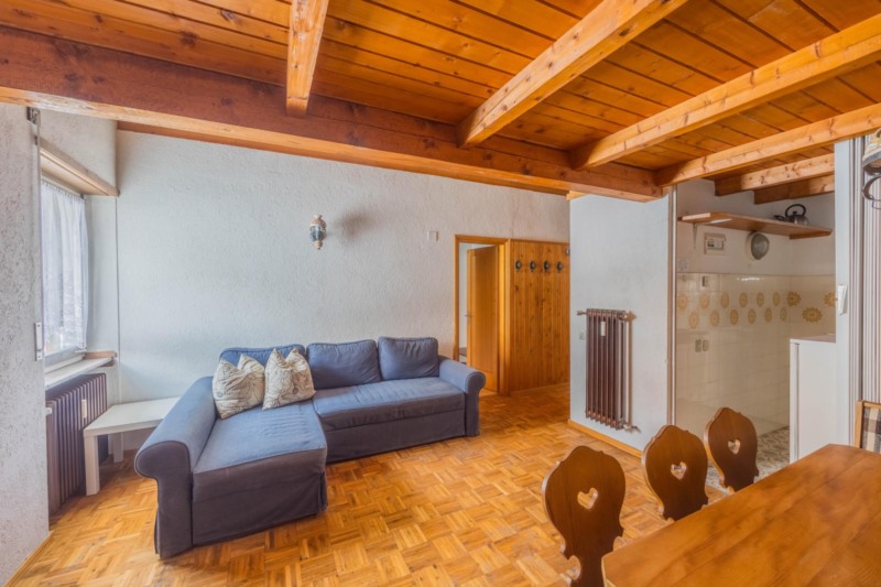 Die Wohnung selbst überzeugt durch ihren traditionellen alpinen Stil, geprägt von warmen Holzelementen, die eine behagliche Atmosphäre schaffen. Nach dem Betreten führt ein einladender Eingangsbereich in die verschiedenen Räume: ein kleines Badezimmer, eine praktische Miniküche sowie ein gemütliches Wohnzimmer, das zum Verweilen nach einem aktiven Tag in den Bergen einlädt. Das Schlafzimmer verfügt über ein eigenes Badezimmer und bietet zusätzlichen Komfort. Eine Innentreppe führt in das Dachgeschoss, das vielseitig genutzt werden kann – sei es als weiterer Schlafbereich, Rückzugsraum oder Stauraum. Eine Garage ist im Kaufpreis bereits inbegriffen und rundet das Angebot ideal ab.