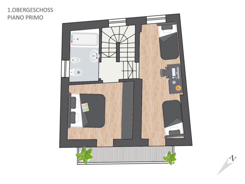 - Großzügiges Bad mit Tageslicht und Nebenräume