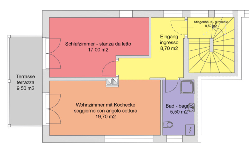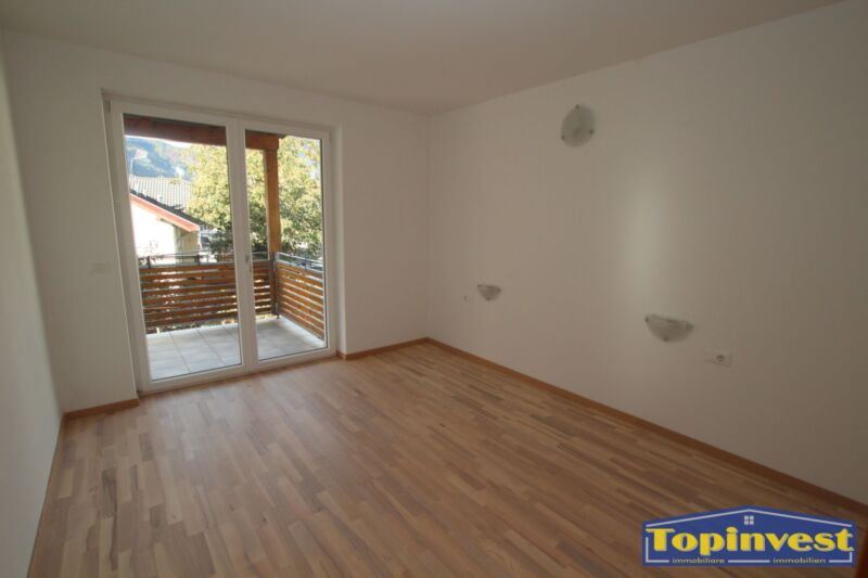 Zweizimmerwohnung im letzten Stock, Erstbezug, sonnig gelegen, 87 qm, eingeteilt in: Wohnzimmer mit Kochecke, Schlafzimmer, Bad, Eingang, Stiegenhaus, Terrasse, Dachboden und Keller. Ein privater Autoabstellplatz ist inklusive. Kein Kondominium!