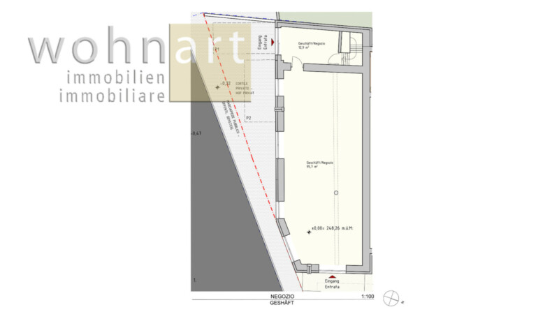 Das Gebäude wurde kürzlich vollständig renoviert und präsentiert sich in modernem und gepflegtem Zustand. Die Fläche überzeugt durch ihre optimale Sichtlage und gute Erreichbarkeit. Drei Autostellplätze sind im Mietpreis bereits inbegriffen.