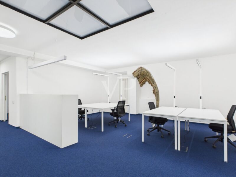Die Innenräume vereinen den architektonischen Charme historischer Gebäude – mit hohen Decken und hochwertigen Ausstattungen – mit modernen Lösungen in Bezug auf Möblierung und Technik. Eine Besprechungslounge, Empfangsbereiche und gemeinschaftlich genutzte Zonen sorgen für ein vielseitig nutzbares Umfeld, das verschiedensten beruflichen Anforderungen gerecht wird.