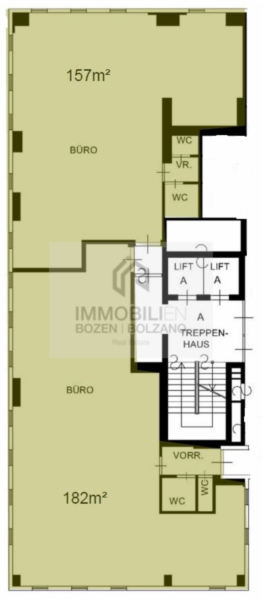 Zur Vermietung steht ein modernes, lichtdurchflutetes Büro im 7. Stock eines Gebäudes in Bozen Süd. Die Fläche von ca. 339 m² besteht aus zwei großzügigen Büroräumen, die durch eine Verbindungstür miteinander verbunden sind. Die Immobilie befindet sich in sehr gutem Zustand.