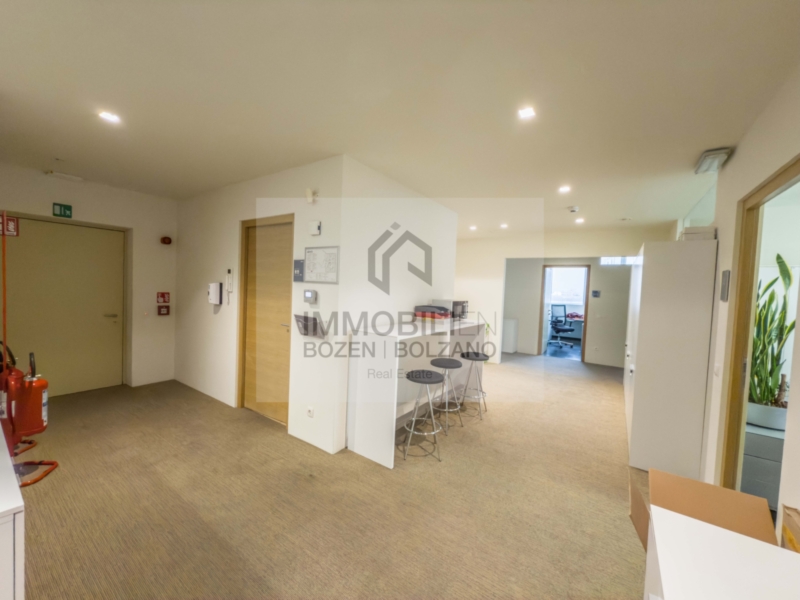 Vermietet wird ein Büro in Bozen Süd, das sich im 5. Stock befindet und eine Fläche von ca. 293 m² hat. Die Immobilie präsentiert sich in einem guten Zustand und besteht aus einem Eingangsbereich mit großem Flur, 10 Büros, einem Abstellraum und WC. Personenaufzug ist vorhanden. Sehr gute Anbindung an das Straßennetz. Mehrere Stellplätze in der Tiefgarage auf Anfrage verfügbar.