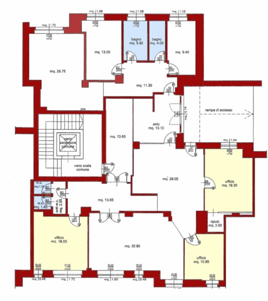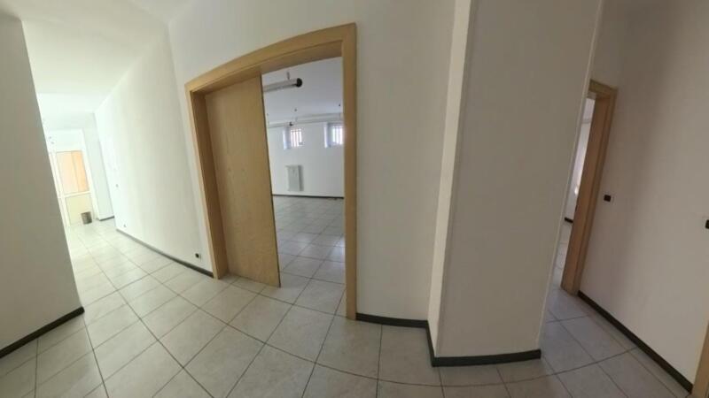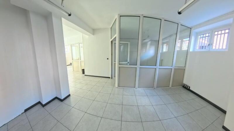 Ein Drittel der Fläche kann als Wohnraum genutzt werden, da Anschlüsse für Küche, Bäder und Schlafzimmer vorhanden sind. Der hintere Bereich umfasst Archivräume und Abstellräume. Der Zugang ist frei von architektonischen Barrieren, und dank einer Zufahrtsrampe kann die Gewerbeimmobilie direkt mit dem Auto erreicht werden.