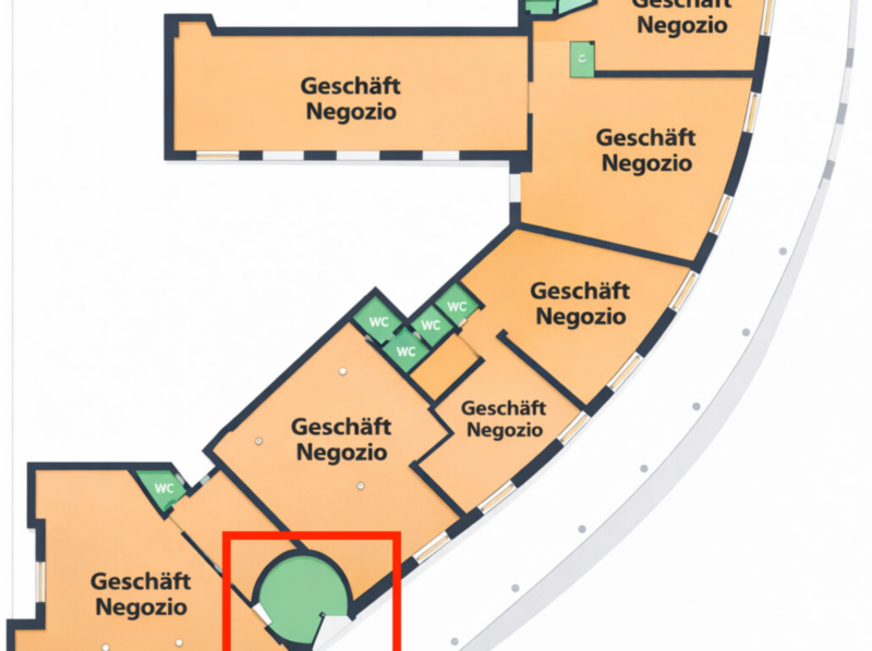 Die Lage überzeugt durch ihre sehr gute Sichtbarkeit sowie die starke Frequenz – sowohl durch Fußgänger als auch durch den Verkehr. Die zentrale Position in einem gewachsenen Stadtviertel mit umliegenden Büros, Dienstleistungsbetrieben und Wohnhäusern macht das Objekt besonders attraktiv.