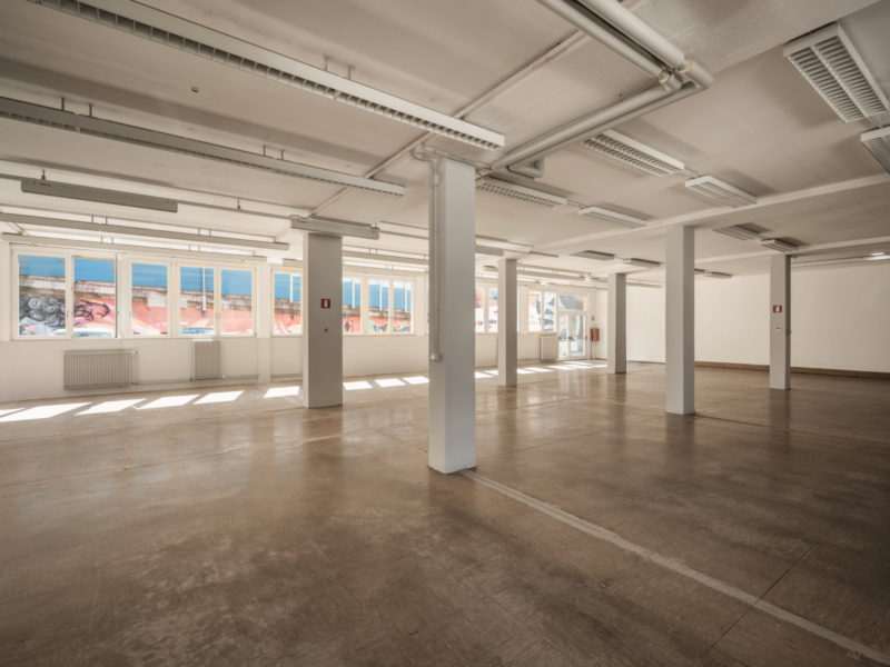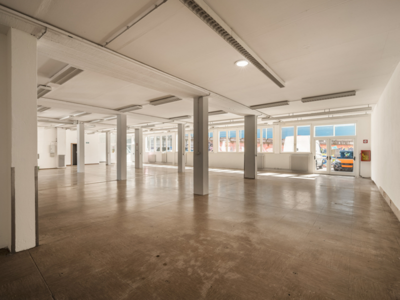 - Erdgeschoss (ca. 370 m² - H ca. 3,40 m): Werkstatt mit Lager und Produktion. Derzeit in offener Raumkonfiguration, bietet es maximale Flexibilität bei der Raumaufteilung.