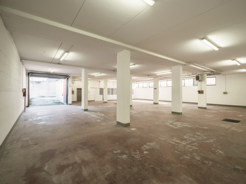 Untergeschoss (ca. 330 m² – h ca. 3,00 m): Lagerfläche mit 2 Toren und bequemer Zufahrt für Lieferfahrzeuge über eine separate Außenrampe.