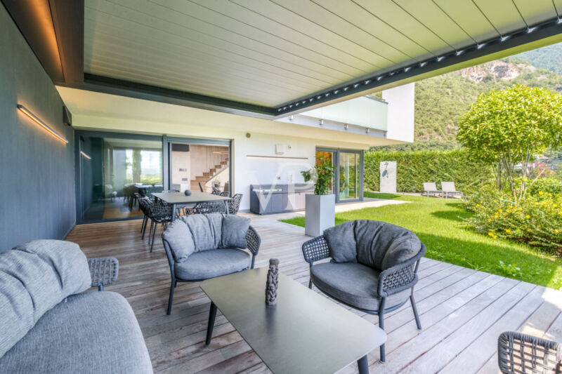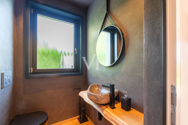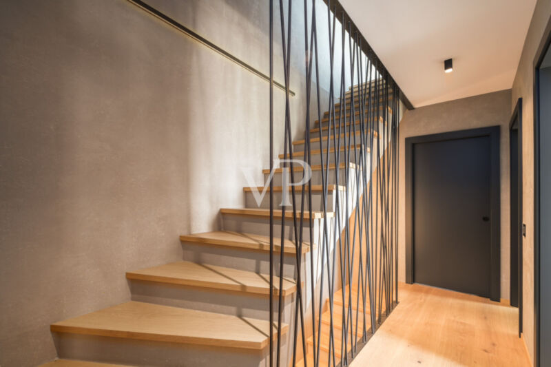 Diese moderne und prestigeträchtige Reihenvilla wurde nach dem höchsten KlimaHaus-Standard „A“ errichtet, was eine exzellente Energieeffizienz garantiert. Das Gebäude überzeugt durch ein hohes Maß an Privatsphäre. Der Eingang im Erdgeschoss führt unmittelbar in den großzügigen Wohn- und Essbereich mit direktem Zugang zum Garten. Dank der großen, bodentiefen Schiebefenster und der optimalen Süd-/Ost-Ausrichtung ist dieser Bereich besonders hell und lichtdurchflutet. Der gepflegte Garten sowie die überdachte Terrasse schaffen eine entspannte und einladende Atmosphäre, die zum Verweilen mit Familie und Freunden einlädt. Im Erdgeschoss befindet sich außerdem ein Tages-WC mit Fenster.