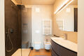 Über eine interne Treppe gelangt man in das Obergeschoss, in dem sich der Schlafbereich befindet. Dieser umfasst eine großzügige Suite mit privatem Bad und Zugang zur Terrasse sowie zwei weitere großzügige Einzelzimmer. Ein weiteres tagesbelichtetes Hauptbadezimmer komplettiert das Raumangebot auf dieser Ebene. Die Immobilie ist mit einer modernen Fußbodenheizung ausgestattet, die individuell steuerbar ist und in allen Räumen für ein behagliches Wohnklima sorgt.