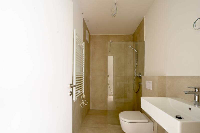 Hochwertiger Parkettboden in den Wohn- und Schlafräumen, hochwertige Keramikfliesen in den Bädern und Sanitäranlagen von Villeroy & Boch.