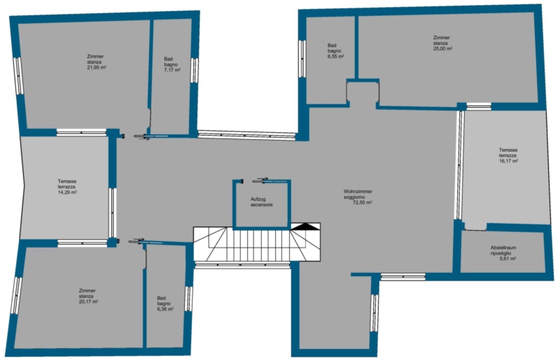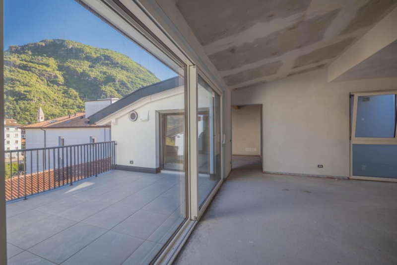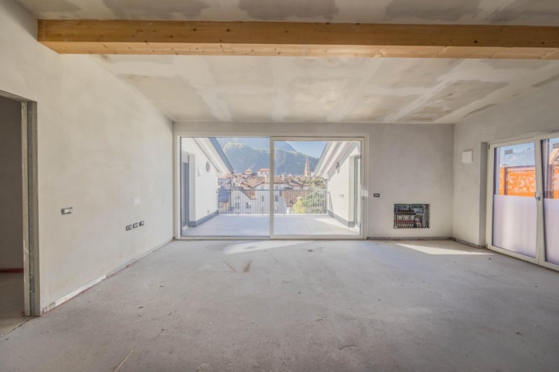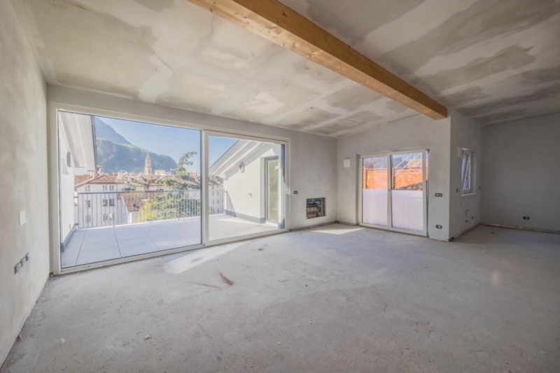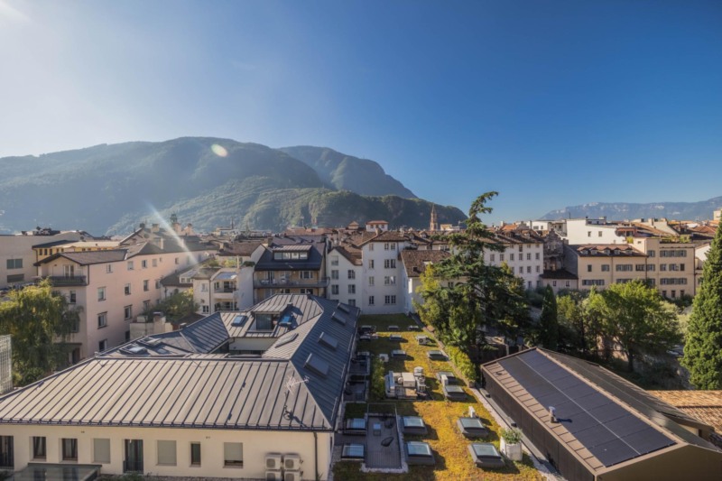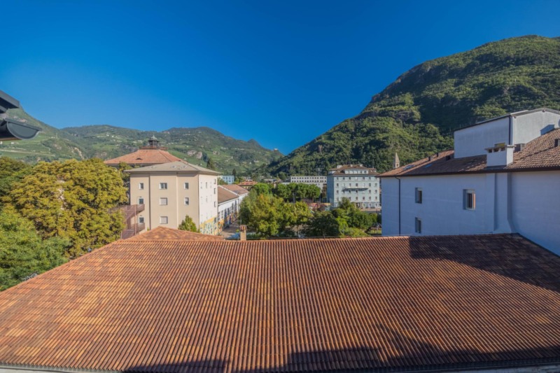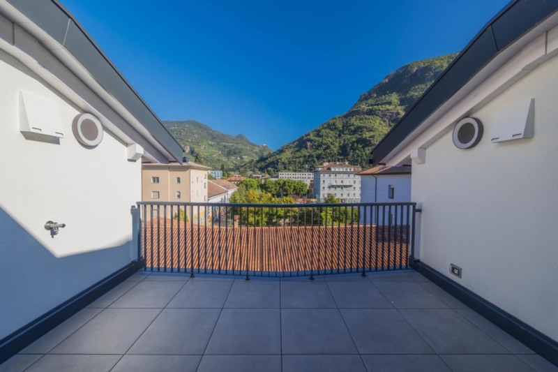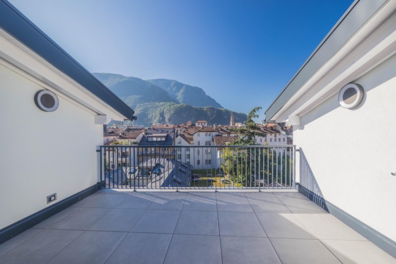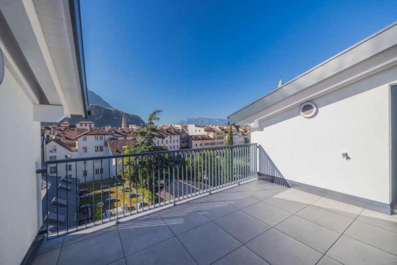 Die zweite Einheit ist eine exklusive Dachgeschosswohnung, die gleich über zwei Terrassen verfügt. Von hier aus eröffnet sich ein traumhafter Panoramablick über die Dächer von Bozen – ein unvergleichliches Highlight, das diese Wohnung zu einer echten Rarität macht. Die großzügigen Außenflächen laden dazu ein, den Blick über die Stadt zu genießen und gleichzeitig absolute Privatsphäre zu wahren.
