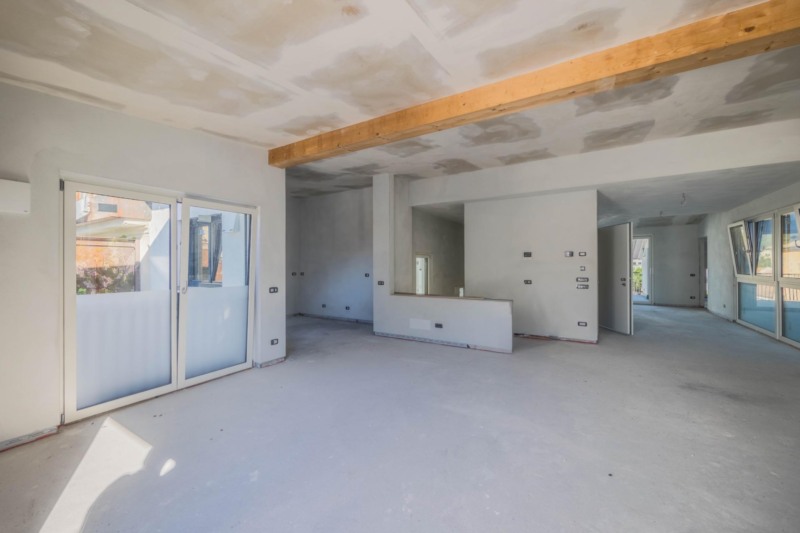 Die erste Einheit ist eine elegante 3-Zimmer Wohnung im Erdgeschoss, die mit einem privaten Garten und einer sonnigen Terrasse ausgestattet ist. Diese Kombination macht sie ideal für alle, die das Leben in der Stadt mit dem Komfort eines eigenen Außenbereichs verbinden möchten. Große Fensterfronten sorgen für viel Licht und schaffen eine einladende Wohnatmosphäre.