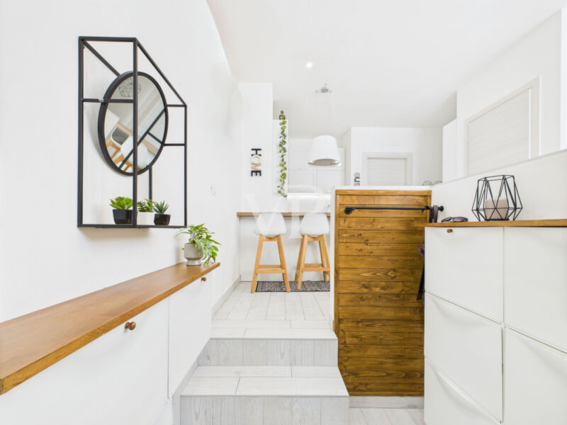 Die Wohnung erstreckt sich über zwei Ebenen mit einer Gesamtnettogeschossfläche von rund 61,5 m² und überzeugt durch eine durchdachte Raumaufteilung sowie eine helle, freundliche Wohnatmosphäre. Im Hochparterre befinden sich ein einladender Eingangsbereich, ein lichtdurchflutetes Wohnzimmer mit offener Küche, ein geräumiges Schlafzimmer mit begehbarem Kleiderschrank, ein Flur mit Garderobenlösung sowie ein modernes, verglastes Badezimmer mit Dusche.