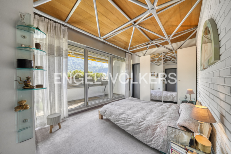 Im Dachgeschoss befindet sich der geräumige Wohnbereich, der sich durch eine moderne Stahlkonstruktion und einen eleganten Holzboden auszeichnet, die eine warme und einladende Atmosphäre schaffen. Die großen Fenster bieten einen Blick auf eine private Loggia mit einem bezaubernden Blick über die Dächer der Altstadt von Bozen, wo absolute Privatsphäre auf allen Seiten garantiert ist.