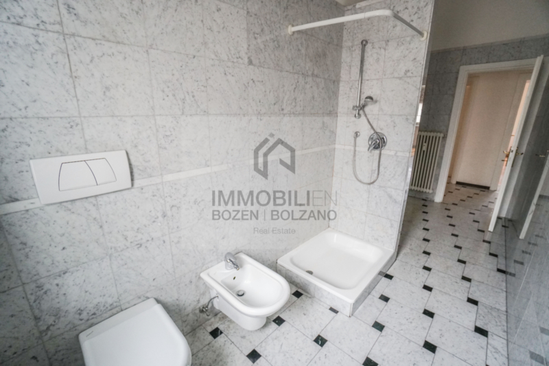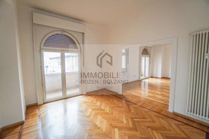Diese großzügige 5 – Zimmerwohnung mit getrennter Küche befindet sich im Zentrum von Bozen, im 2. Stock eines Gebäudes mit der Energieklasse „G“. Die Wohnung hat eine Fläche von ca. 149 m² und ist wie folgt unterteilt: Eingangsbereich mit Flur, großes Wohnzimmer, Esszimmer, Küche, 3 Schlafzimmer, 2 Bäder, Abstellraum und 2 Balkone. Die Wohnung wird unmöbliert vermietet (keine Küche vorhanden). Zur Immobilie gehört ein Keller. Heizung ist in den Kondominiumspesen enthalten. Warmwasser ist autonom.