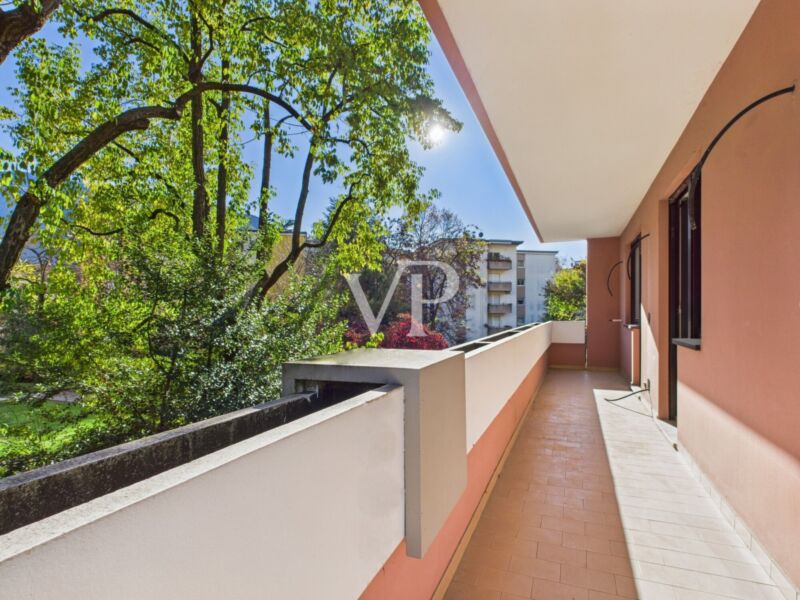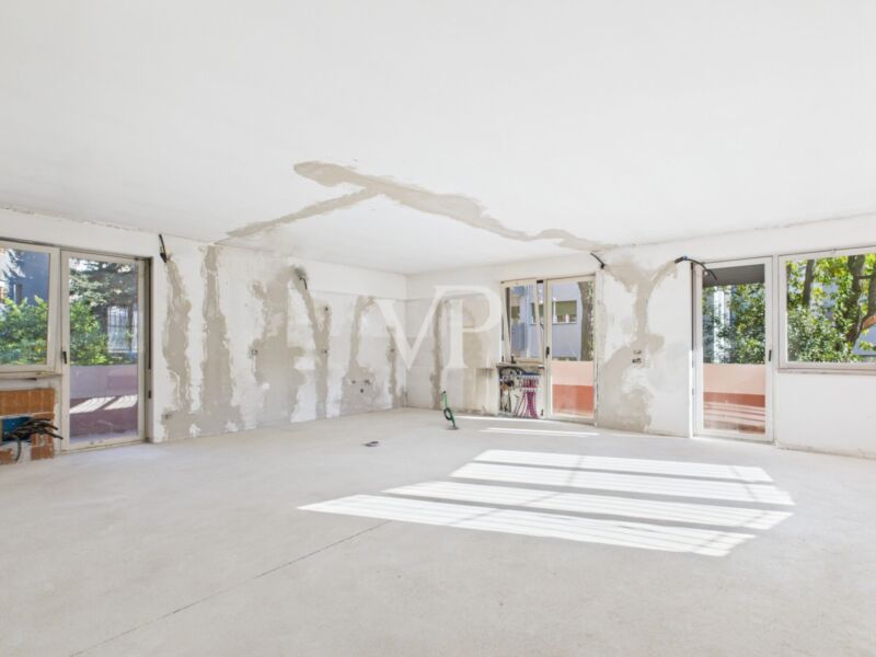 Das kleine, von Grün umgebene Kondominium mit nur wenigen Wohneinheiten und Aufzug bietet eine Atmosphäre von Exklusivität und Privatsphäre.Im zweiten und zugleich obersten Stockwerk befindet sich diese elegante Immobilie, die sich derzeit in Renovierung befindet, mit direktem Zugang zur privaten Dachterrasse.