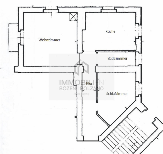 Die Wohnfläche gliedert sich in einen Eingangsbereich mit Flur, eine separate Wohnküche, ein Wohnzimmer mit Balkon, ein Schlafzimmer sowie ein Badezimmer mit Fenster. Zur Wohnung gehören außerdem ein Keller und ein Dachboden, die zusätzlichen Stauraum bieten. Im Innenhof des Kondominiums stehen gemeinschaftlich Autostellplätze zur Verfügung.