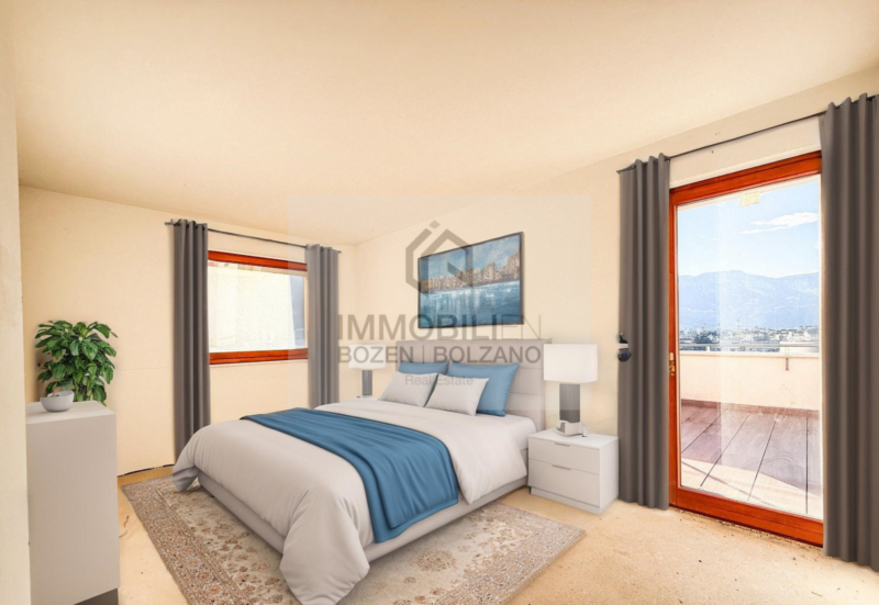 Sehr schöne Attikawohnung im Zentrum von Bozen zu verkaufen. Die Wohnung befindet sich im 7. Stock eines Gebäudes, mit der Energieklasse „A“ und hat eine Fläche von ca. 163,84 m². Sie ist Nord-Süd-West ausgerichtet und besteht aus Eingangsbereich, Wohnzimmer, Küche, Abstellraum, Flur, 3 Schlafzimmer, 2 Badezimmer, ein Balkon und einer Terrasse mit Garten. Keller ist im Preis inbegriffen.