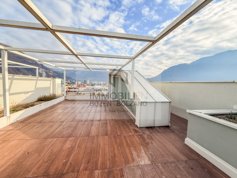 In Firmian steht diese exklusive 3-Zimmer-Neubauwohnung im Klimahaus-A-Standard zum Verkauf. Die Wohnung befindet sich im 6. Obergeschoss eines modernen Wohngebäudes und überzeugt durch ihre Nord-Süd-Ausrichtung, die ein angenehmes Wohnambiente sowie optimale Lichtverhältnisse gewährleistet. Die Wohnung verfügt über eine Verkaufsfläche von ca. 122 m² und bietet eine durchdachte Raumaufteilung. Der Aufzug führt direkt in die Wohnung, die sich in einen Eingangsbereich mit Flur, ein großzügiges Wohnzimmer mit Kochnische, einen Flur, zwei Schlafzimmer, zwei Badezimmer sowie 2 Balkone gliedert. Über eine interne Treppe gelangt man zudem auf die private Dachterrasse, die exklusiven Freiraum und einen hohen Wohnkomfort bietet. Ein Kellerabteil ist im Kaufpreis enthalten. Garagenboxen in unterschiedlichen Größen stehen optional zur Verfügung. Die Wohnung ist konventioniert, eine Freistellung ist gegebenenfalls möglich.