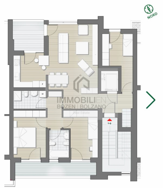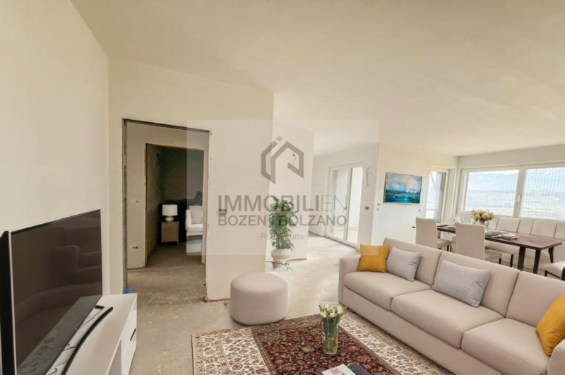 In Firmian steht diese exklusive 4-Zimmer-Neubauwohnung im Klimahaus-A-Standard zum Verkauf. Die Wohnung befindet sich im 7. Obergeschoss eines modernen Wohngebäudes und überzeugt durch ihre Nord-Süd-Ausrichtung, die ein angenehmes Wohnambiente sowie optimale Lichtverhältnisse gewährleistet. Die Wohnung verfügt über eine Verkaufsfläche von ca. 146 m² und bietet eine durchdachte Raumaufteilung. Der Aufzug führt direkt in die Wohnung, die sich in einen Eingangsbereich mit Flur, ein großzügiges Wohnzimmer mit Kochnische, einen Flur, drei Schlafzimmer, zwei Badezimmer sowie 2 Balkone gliedert. Über eine interne Treppe gelangt man zudem auf die private Dachterrasse, die exklusiven Freiraum und einen hohen Wohnkomfort bietet. Ein Kellerabteil ist im Kaufpreis enthalten. Garagenboxen in unterschiedlichen Größen stehen optional zur Verfügung. Die Wohnung ist konventioniert, eine Freistellung ist gegebenenfalls möglich.