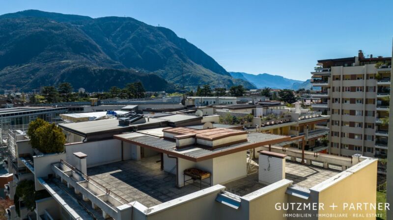 Max-Valier-Straße in Bozen/Gries . Wir bieten in der schönsten Gegend von Gries dieses wunderschöne Duplex-Penthouse in der Max-Valier-Straße zum Verkauf an, ca. 195 m², mit einem atemberaubenden 360°-Blick auf den Rosengarten, die Mendel, Schloss Rafenstein und die Hügel von Sankt Anton.