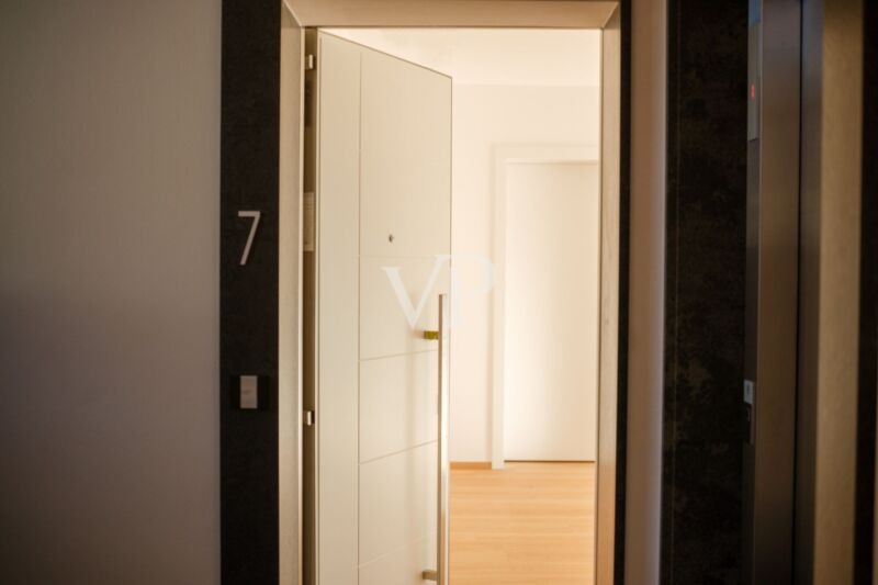 Ausgestattet ist die Wohnung mit edlen Holzfußböden, hochwertigen Fliesen in den Bädern, maßgefertigten Badmöbeln, Innentüren von Rubner, einer Sicherheitstür von Gasperotti sowie dreifach verglasten Fenstern von Wolf Fenster. Moderne Haustechnik und Videoüberwachung sind ebenfalls vorhanden.