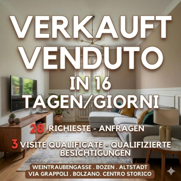 GERÄUMIG, 2 ZIMMER + SEPARATE KÜCHE WEINTRAUBENGASSE . BOZEN . ALTSTADT NICHT KONVENTIONIERT, SOFORT VERFÜGBAR