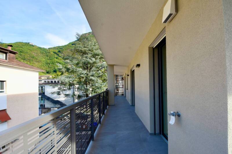 Die Ausstattung der Wohnung ist auf einem hohen Niveau: elegante Holzparkettböden verleihen den Räumen eine warme Atmosphäre, und die dreifach verglasten Fenster mit elektrischen Rollläden sorgen für Ruhe und optimale Dämmung. Die Fußbodenheizung und das zentrale Lüftungssystem gewährleisten ein angenehmes Raumklima zu jeder Jahreszeit. Die Sanitäreinrichtungen aus weißer Keramik unterstreichen den modernen und funktionalen Charakter der Wohnung.