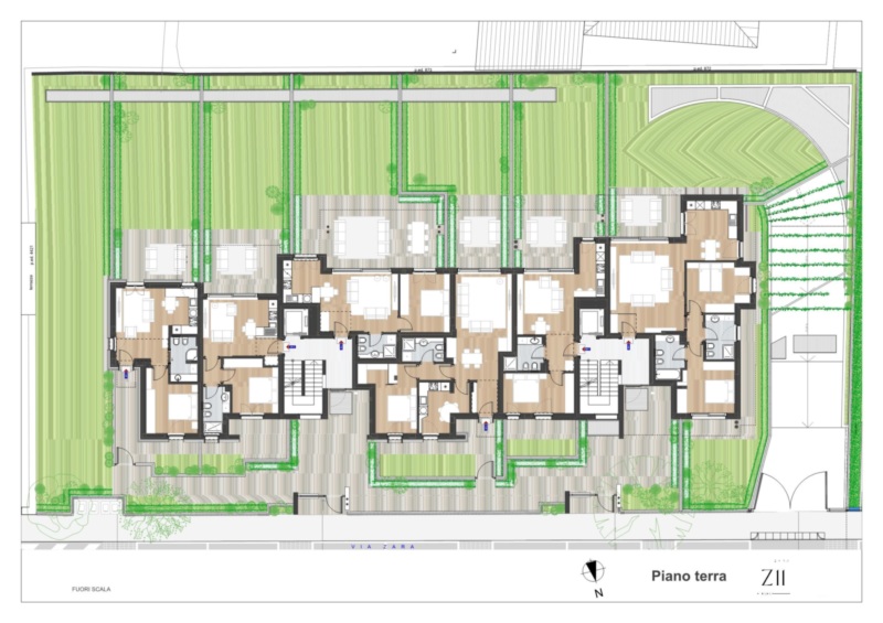 Wir stellen Ihnen diese Erdgeschosswohnung mit der Bezeichnung A0-1 vor. Sie verfügt über eine Nord-Ost-Süd Ausrichtung und ist auf drei Seiten frei. Die Innenaufteilung umfasst einen großzügigen Wohnbereich mit Wohnzimmer und offener Küche, ein Schlafzimmer mit Doppelbett und ein Badezimmer. Doch die wahre Überraschung ist der große nach Süden ausgerichtete Garten, der zusammen mit dem kleineren nach Norden ausgerichteten Garten eine Oase der Entspannung bildet – ein intimer Ort, ideal für Abendessen unter den Sternen und Momente des reinen Wohlbefindens. Darüber hinaus verfügt die Wohnung über einen eigenen Eingang. Im Angebot enthalten ist ein Keller und als Extra besteht die Möglichkeit, einen oder mehrere Garagen in verschiedenen Größen zu erwerben. Das Projekt Z11, das vom renommierten Studio Work Architects des Architekten Renzo Gennaro entworfen wurde, sieht den Einsatz von hochleistungsfähigen Isoliermaterialien und Fenstern vor. Die Anwendung von technischen Lösungen zur Schalldämmung sowie die Fußbodenheizung/Kühlung mittels Wärmepumpen, die von Photovoltaikpanelen gespeist werden, ermöglichen es dem Projekt, die energetischen Anforderungen für die Einstufung als "CasaClima A Nature" zu erfüllen, was erhebliche Energie- und Kosteneinsparungen garantiert. Die Einheit wird mit einem Smart-Home-System ausgestattet sein, das verschiedene Funktionen wie Raumtemperaturregelung, Automatisierung der Rollläden, Anbindung und Steuerung des Einbruchschutzsystems sowie die Beleuchtungssteuerung verwalten kann. Außerdem wird es einen Bereich für digitale Paketzustellung geben. All das macht ZARA ELEVEN zu Ihrem Zuhause der Zukunft.