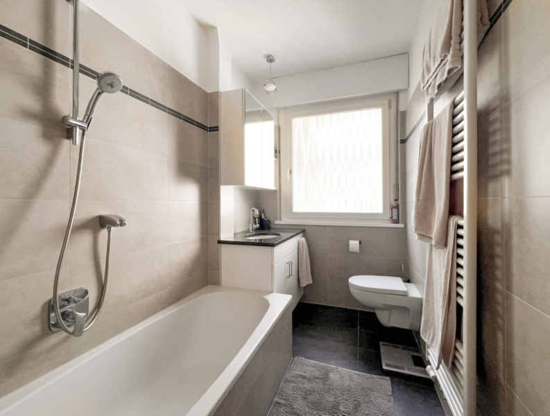 Die Wohnung überzeugt durch ihren sehr guten Zustand und ist mit einer Klimaanlage ausgestattet. Der Südbalkon bietet einen freien Blick bis zum Rosengarten. In unmittelbarer Nähe befinden sich sämtliche Geschäfte des täglichen Bedarfs sowie der Grieser Platz; auch die Bushaltestelle ist bequem und schnell erreichbar. Ein Kellerabteil rundet das Angebot zusätzlich ab. Im Kondominium stehen darüber hinaus weitere gemeinschaftliche Parkplätze zur Verfügung.