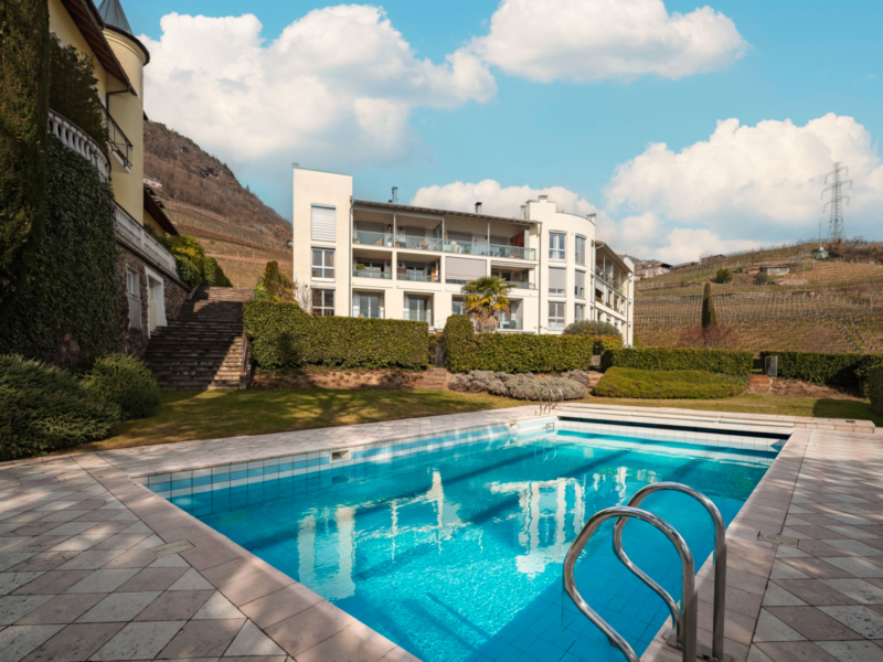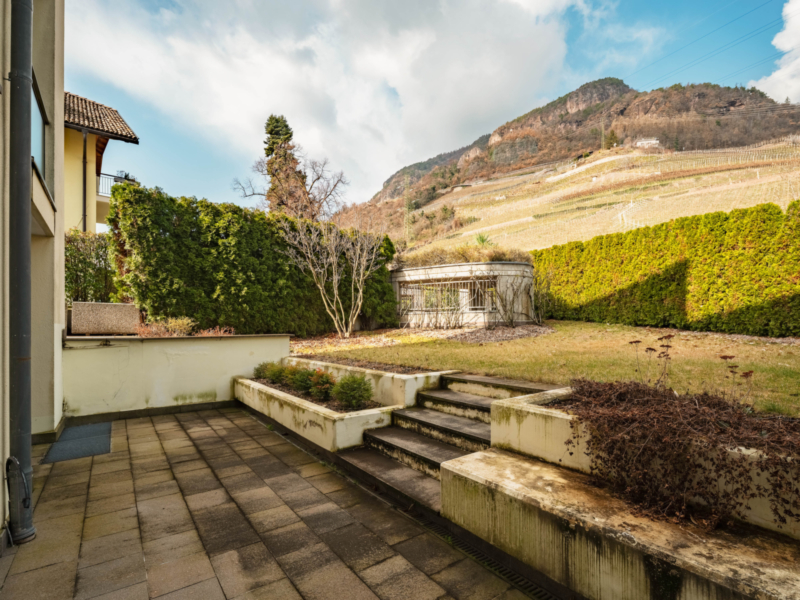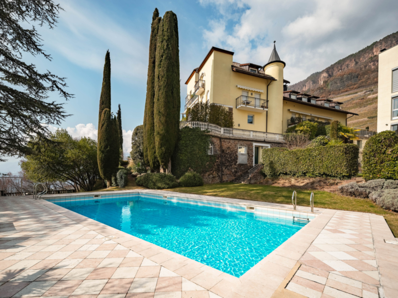 Die privilegierte Lage der Immobilie bietet einen beeindruckenden, unverbaubaren Blick auf den Rosengarten, die Stadt Bozen sowie die umliegende, malerische Landschaft. Der großzügig gestaltete Wohnbereich mit Kamin und integrierter Küche bildet das Herzstück der Wohnung und führt direkt auf die sonnige Terrasse sowie in den privaten Garten mit Zugang zum gepflegten Gemeinschaftspool.
