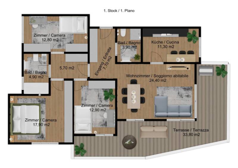 Wir bemühen uns, auf dieser Website richtige und vollständige Informationen zur Verfügung zu stellen. Wir übernehmen jedoch keine Haftung oder Garantie für die Aktualität, Richtigkeit und Vollständigkeit der bereitgestellten Informationen und Bildmaterial. Zweidimensionale Grundrisse und dreidimensionale Renderings sind größtenteils figurativ und nicht immer maßstabsgetreu bzw. entsprechen nicht immer der Realität. Wir behalten uns das Recht vor, ohne vorherige Ankündigung Änderungen oder Ergänzungen der bereitgestellten Informationen vorzunehmen.