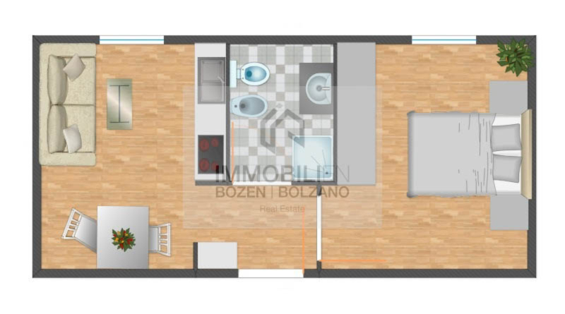 Diese charmante 2-Zimmerwohnung der Altstadt von Bozen überzeugt durch ihre ruhige Ausrichtung in den Innenhof und eine durchdachte Raumaufteilung. Sie befindet sich im 2. Stock eines gepflegten Gebäudes ohne Aufzug und wird vollmöbliert übergeben. Der Wohnbereich mit Küche bildet den Mittelpunkt der Wohnung, ergänzt durch ein gemütliches Schlafzimmer sowie ein Badezimmer mit Velux-Fenster, das für angenehmes Tageslicht sorgt. Heizung und warm Wasser sind Autonom. Ein Keller bietet zusätzlichen Stauraum. Die Wohnung ist eine sehr interessante Kapitalanlage: Sie wurde im Jänner 2026 vermietet und erzielt eine Rendite von ca. 4 %.