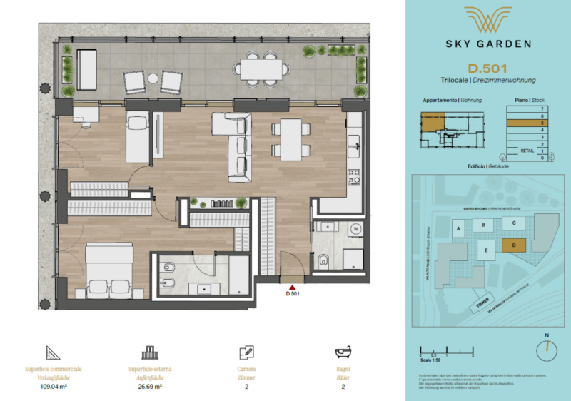 In Bozen Bester lage entsteht der WaltherPark, ein innovatives Architekturprojekt, das das Stadtzentrum neu gestaltet. In diesem einzigartigen Kontext bieten wir eine neu gebaute Dreizimmerwohnung im 5. Stock, errichtet nach dem Energiestandard KlimaHaus A Nature.