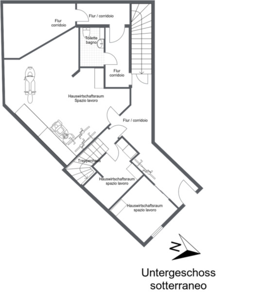 Kelleretage mit mehreren großen Werkräumen und eigenes WC.