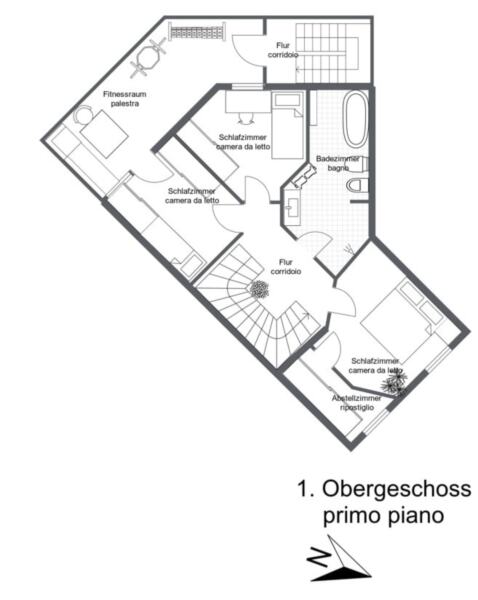 Direkt am Fuß der Plose gelegen, Zone Milland. Die Immobilie ist durch die ausgezeichnete Lage, die architektonische und bauliche Qualität ein Luxusobjekt. Ein eingebauter Kachelofen ist das Herzstück der geräumigen Wohnküche im Erdgeschoss. Von hier ist direkt die große sonnige Terrasse zugänglich, die nach Belieben gestaltet werden kann. Einzigartig ist das voll ausgestattete Fitnessstudio im ersten Obergeschoss, dessen Glasfassade Sonne und Wärme übers ganze Jahr ermöglicht. Das Untergeschoss umfasst mehrere große Werkräume und ein eigenes WC. Eine handgefertigte hölzerne Rundtreppe verbindet die vier Etagen miteinander. Diese Wohnung ist frei von jeglichen Bildungen.