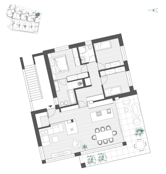 Dieses hochwertige Penthouse in der Wohnanlage „Christelehof“ verbindet die perfekte Balance aus Stadtnähe und Naturverbundenheit. Von hier genießen Sie einen herrlichen Blick über Brixen, während der angrenzende Wald die Lage zusätzlich aufwertet. Der lichtdurchflutete Wohnbereich mit offener Küche und modernem Ofen bildet das Herzstück der Wohnung. Es gibt drei Schlafzimmer, darunter ein Elternschlafzimmer mit eigenem Bad sowie zwei Kinderzimmer. Ein weiteres Badezimmer sorgt für zusätzlichen Komfort. Das Highlight ist die großzügige Terrasse, die zum Durchatmen, Genießen und Ankommen einlädt. Ein großer Keller, ideal als Fitnessraum oder Studio sowie eine Doppelgarage runden das Angebot ab. Die Immobilie ist nicht konventioniert und kann somit als Ferienunterkunft genutzt werden.