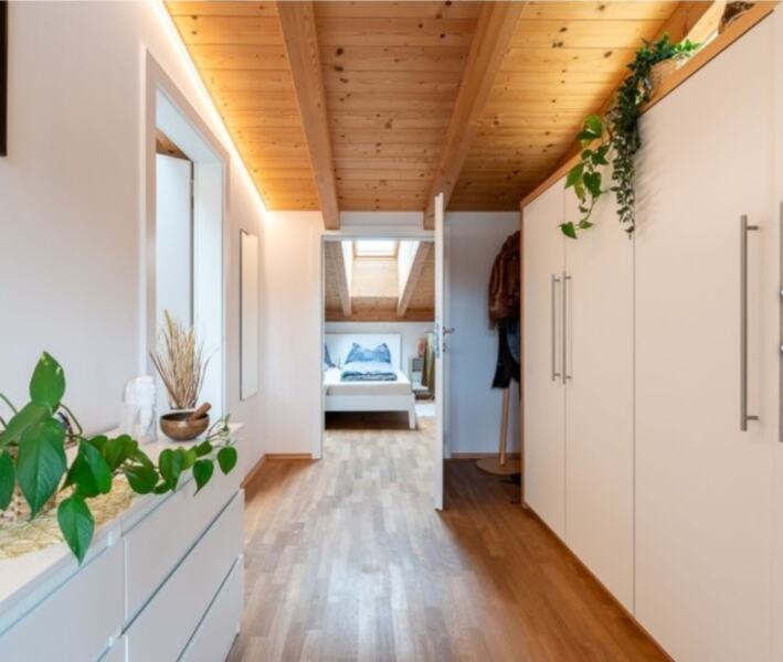 Sonnige Mansardenwohnung in Brixen/Milland zum Verkauf! Die Wohnung im zweiten Stock befindet sich neben der Karlspromenade im Plosewald und ist vom Stadtzentrum aus in wenigen Minuten erreichbar. Besondere architektonische und bauliche Qualität zeichnen die sonnige Wohnung aus. Sie ist sowohl durch einen externen Zugang als auch von der unteren Wohnung über eine hölzerne Treppe zugänglich. Den Höhepunkt des Komforts bietet ein Wintergarten mit fantastischem Ausblick auf die Berge um den Radlsee.