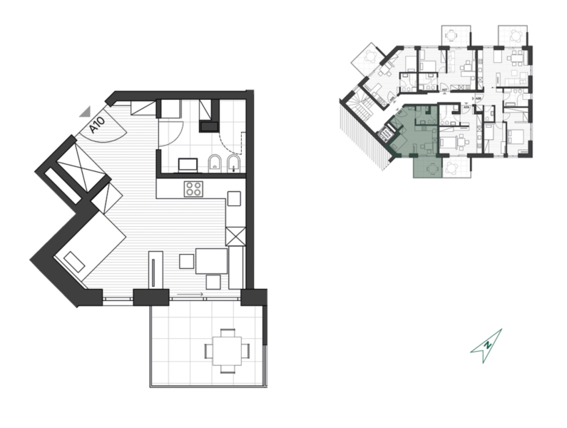 Einzimmerwohnung im Dachgeschoss mit Wohnküche, Bad und Balkon. Im Untergeschoss verfügt die Wohnung über einen Keller, während ein Autostellplatz separat erworben werden kann.