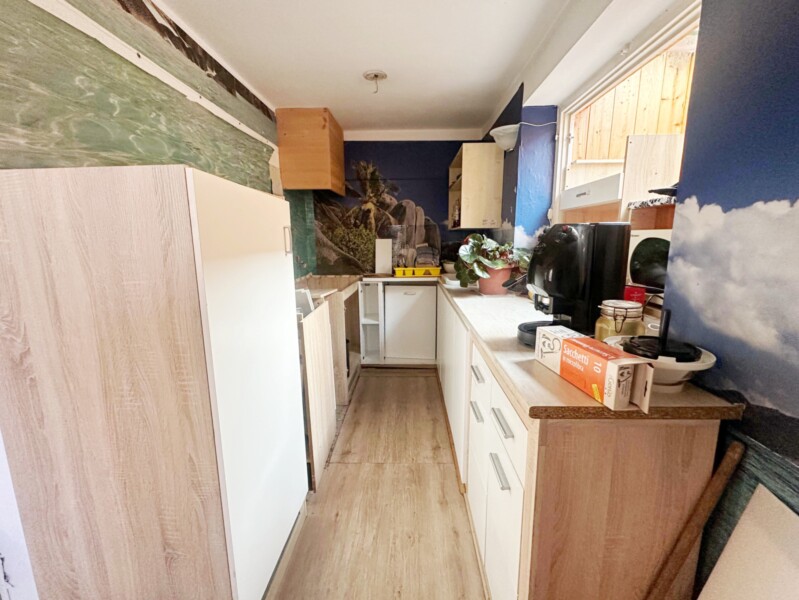 Die Wohnung verfügt über ein Wohnzimmer mit integrierter Küche, zwei Schlafzimmer, ein Badezimmer sowie ein zusätzliches WC.