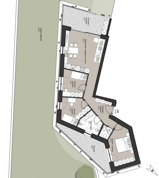 Im Erdgeschoss befindet sich diese geräumige Vierzimmerwohnung, die über eine gemütliche Wohnküche, drei Schlafzimmer, ein Badezimmer, ein Gäste-WC, zwei Terrassen und einen großen Garten verfügt. Zusätzlich gibt es einen Keller im 2. Untergeschoss.
