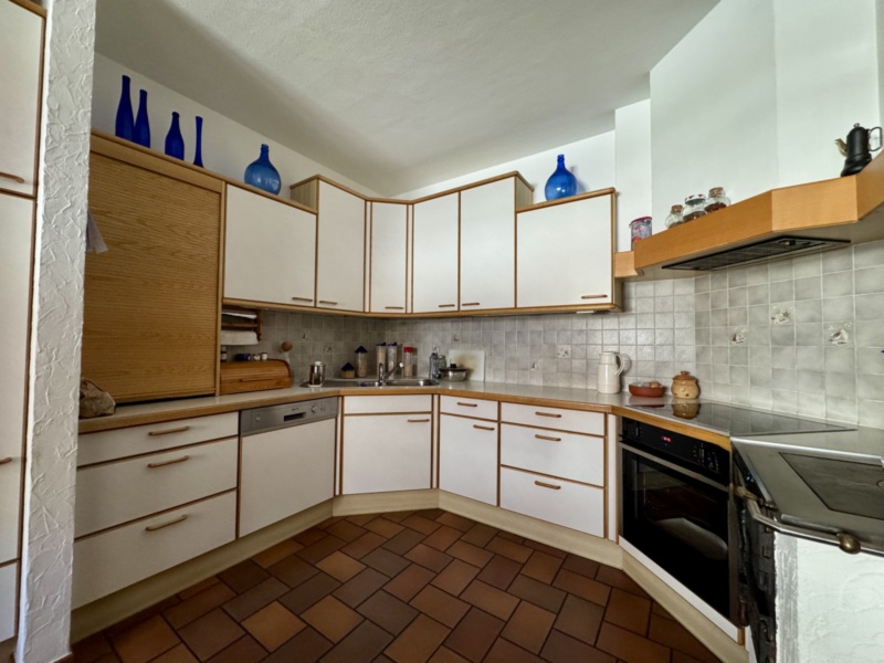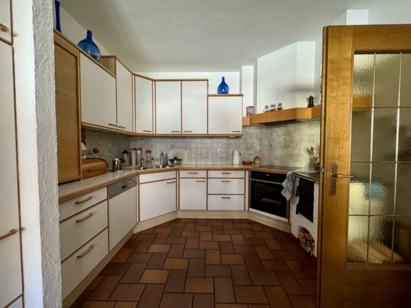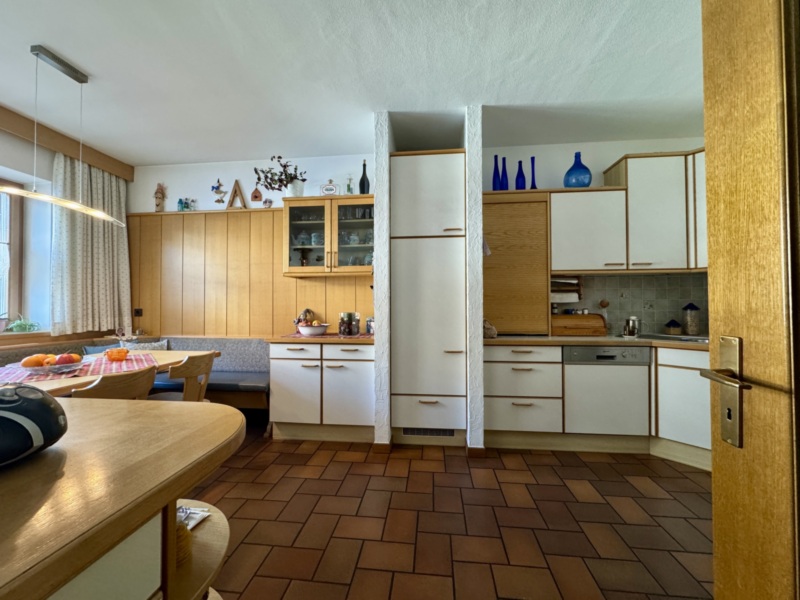 Im Erdgeschoss befindet sich eine großzügige Wohnküche sowie der helle Wohnbereich mit Zugang zur Terrasse und zum Privatgarten.