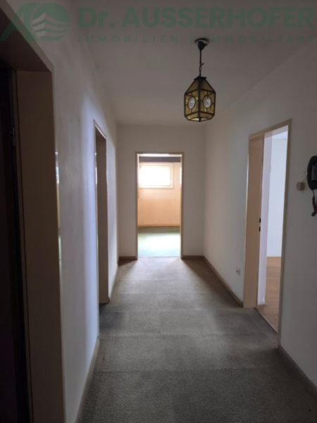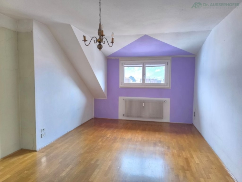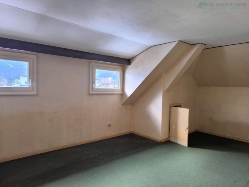 Diese Dreizimmerwohnung im Dachgeschoss befindet sich in ruhiger und dennoch zentraler Lage in Bruneck. Die Immobilie bietet eine ideale Gelegenheit für Eigennutzer oder Investoren, die auf der Suche nach einem Sanierungsobjekt mit Entwicklungspotenzial sind. Die Wohnung besteht aus einer Wohnküche mit angrenzender Speisekammer, zwei Schlafzimmern, einem Bad, einem WC und einem Keller. Darüber hinaus verfügt das Objekt über einen anteiligen Garten und einem gemeinsamen Trockenraum.