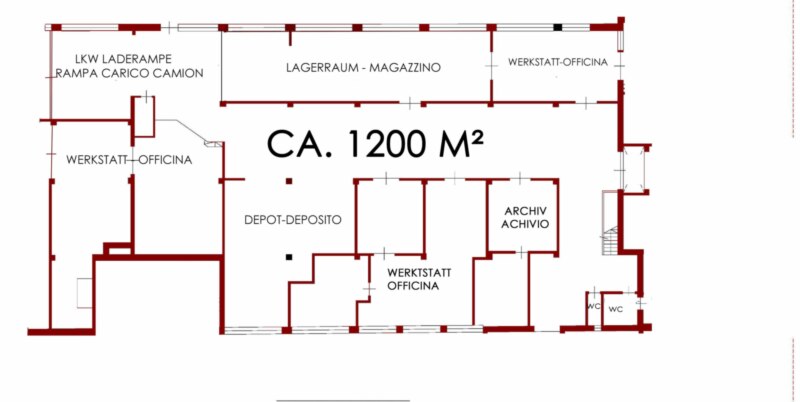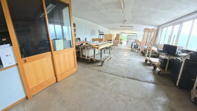 Die Halle ist mit einer LKW Laderampe ausgestattet und bietet zahlreiche Nebenräume sowie zusätzliche Lagerflächen, wodurch sie vielseitig nutzbar ist. Eine großzügige Fensterfront sorgt für angenehmes Tageslicht und eine gute Frischluftzufuhr.