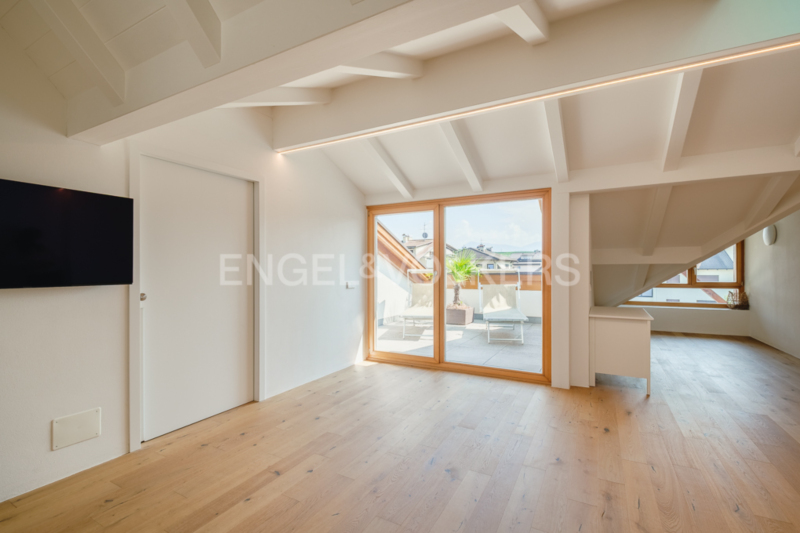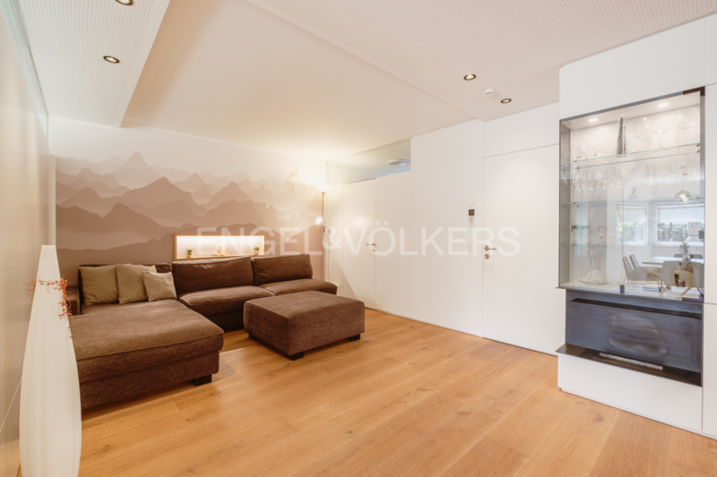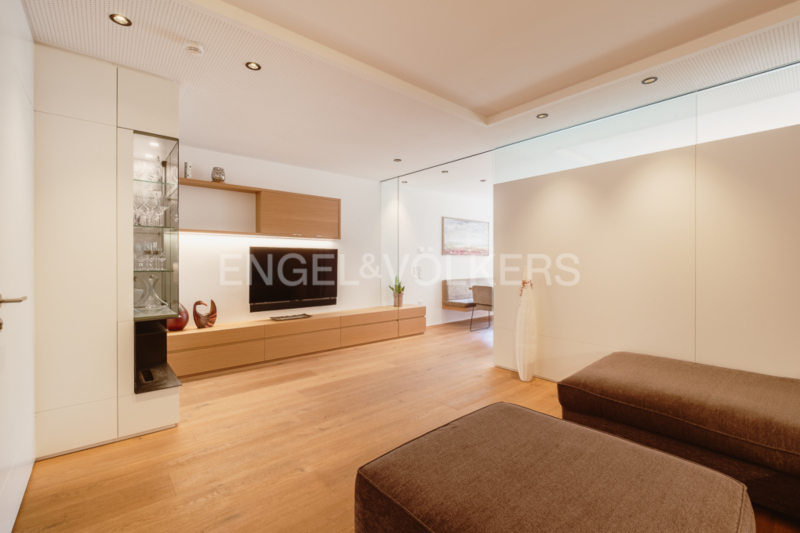 Diese exklusive Haushälfte erstreckt sich über vier Etagen und wurde vor kurzem mit höchstem Anspruch und viel Liebe zum Detail vollständig renoviert. Modernste Technik wie Bodenheizung, Klimaanlage und eine zeitgemäße Alarmanlage verbinden sich mit einer exquisiten Auswahl an Materialien und edlen Oberflächen. Die neue, durchdachte Raumaufteilung sorgt für lichtdurchflutete Wohnbereiche und höchsten Wohnkomfort. Ein moderner Aufzug verbindet alle Ebenen, vom großzügigen Keller bis ins Dachgeschoss. Im Erdgeschoss erwartet Sie ein weitläufiger Wohn- und Essbereich mit traumhafter Design-Einbauküche, ausgestattet mit Premium-Geräten. Der stilvolle Kamin im Wohnzimmer sorgt für behagliche Abende und lässt sich vom Essbereich abtrennen. Von der Küche aus gelangen Sie in den liebevoll, professionell gestalteten privaten Garten, welcher von Frühling bis Herbst schöne erholsame Momente im Freien beschert. Ein Abstellraum und ein elegantes Tages-WC ergänzen diese Ebene. Das erste Obergeschoss beherbergt ein großzügiges Schlafzimmer mit Ankleidezimmer und luxuriösem Bad en suite. Freistehende Badewanne, großzügige Dusche und edle Corian-Oberflächen schaffen ein Spa-Ambiente. Angrenzend befindet sich ein heller Raum, ideal als Fitness- oder Arbeitszimmer, sowie ein hochwertig vom Schreiner ausgestatteter Wirtschaftsraum. Im Dachgeschoss lädt ein großzügiger heller Raum mit uneinsehbarer Sonnenterrasse zum Entspannen ein. Ein modernes Badezimmer mit Dusche vervollständigt diese Etage. Drei Garagenplätze direkt unter der Wohnung, bequem per Aufzug erreichbar, und ein sehr großer Keller runden dieses außergewöhnliche Angebot ab. Die Immobilie wird mit der geschmackvollen, exklusiven Einrichtung übergeben, ein Zuhause, das Design und Komfort perfekt vereint.