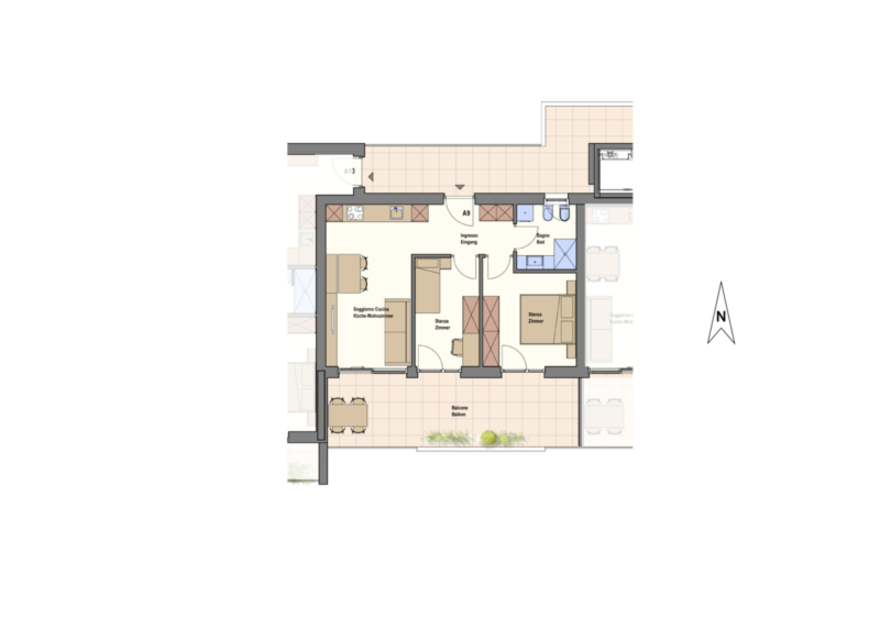 In St. Michael, Eppan finden Sie diese konventionierte Dreizimmerwohnung mit großzügiger Terrasse, die Villa Ioanna verbindet urbanen Komfort mit naturnaher Ruhe. Dank ihrer hervorragenden Lage sind öffentliche Verkehrsmittel in wenigen Minuten erreichbar und bieten eine schnelle Verbindung nach Bozen. Einkaufsmöglichkeiten wie Lebensmittelgeschäfte und Bäckereien befinden sich in unmittelbarer Nähe. Für Familien ist die Villa ebenfalls ideal, da Kindergarten, Grund- und Mittelschule bequem zu Fuß erreichbar sind. Die nahegelegene Bahnhofstraße lädt mit charmanten Cafés, Restaurants und Boutiquen zum Bummeln ein, während Spazierwege und Weinberge zur Erholung einladen. Damit vereint die Villa Ioanna modernes Wohnen mit einer ausgezeichneten Infrastruktur – perfekt für alle, die Komfort und Lebensqualität schätzen. Neben der Immobilie kann auch eine Garage oder ein Stellplatz erworben werden. Garagen starten ab 40.000€+MwSt. und Stellplätze ab 22.500€ + MwSt.