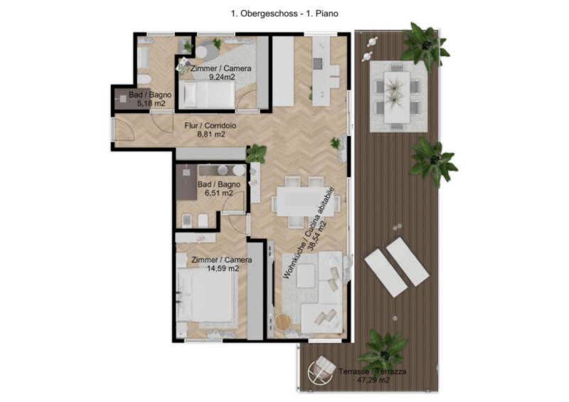 Unser Ziel ist es, auf dieser Website korrekte und vollständige Informationen bereitzustellen. Wir übernehmen jedoch keine Haftung und geben keine Garantie für die Aktualität, Richtigkeit und Vollständigkeit der bereitgestellten Informationen. Zweidimensionale Grundrisse und dreidimensionale Renderings dienen lediglich zur Veranschaulichung und sind nicht immer maßstabsgetreu oder wahrheitsgetreu. Wir behalten uns das Recht vor, Änderungen oder Ergänzungen der bereitgestellten Informationen ohne Vorankündigung vorzunehmen.