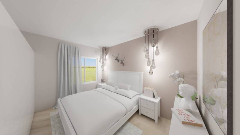 Die Wohnung verfügt über ein großes Doppelschlafzimmer und ein weiteres Einzelzimmer, ideal als Kinderzimmer, Gästezimmer oder Homeoffice. Zwei voll ausgestattete Badezimmer, beide mit komfortablen Duschen, sorgen für zusätzlichen Komfort.