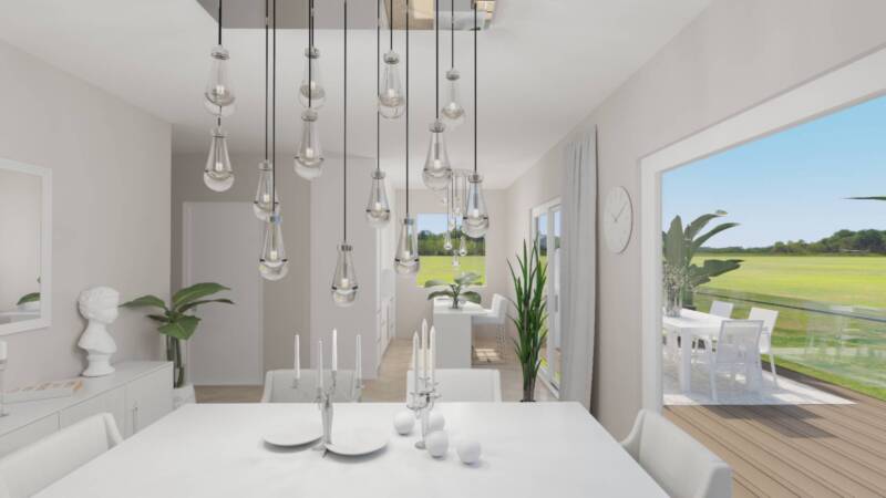Zu den hochwertigen Ausstattungsmerkmalen gehören elegante Holzböden im Wohnbereich, keramische Fliesen in den Bädern, elektrische Raffstores sowie eine Fußbodenheizung mit individueller Steuerung in jedem Raum. Eine dezentrale Lüftungsanlage sorgt für frische Luft, und die effiziente Luftwärmepumpe, unterstützt durch eine Photovoltaikanlage, gewährleistet eine umweltfreundliche Heizung und Kühlung.