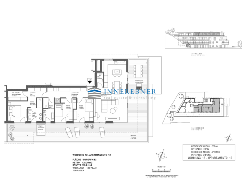 Diese luxuriöse Wohnung beeindruckt mit 3 Schlafzimmern, 2 Bädern, einem Tages-WC und einer offenen Wohnküche. Ein besonderes Highlight ist der begehbare Kleiderschrank, der zusätzlichen Stauraum bietet und das Wohnen noch komfortabler macht. Die über 100 m² große Terrasse erweitert den Wohnraum nach außen und bietet ausreichend Platz für vielfältige Nutzungsmöglichkeiten – ideal für entspannte Stunden im Freien oder gesellige Zusammenkünfte. Diese Wohnung vereint hohen Komfort und exklusives Wohnen in einer großzügigen und durchdachten Raumaufteilung.